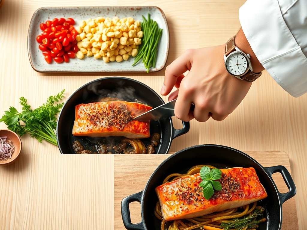 The "Chef's Flow" is all about efficiency. Total preparation time is approximately 10 minutes, while the active roasting time ranges from 8 to 12 minutes depending on the thickness of the fillet.