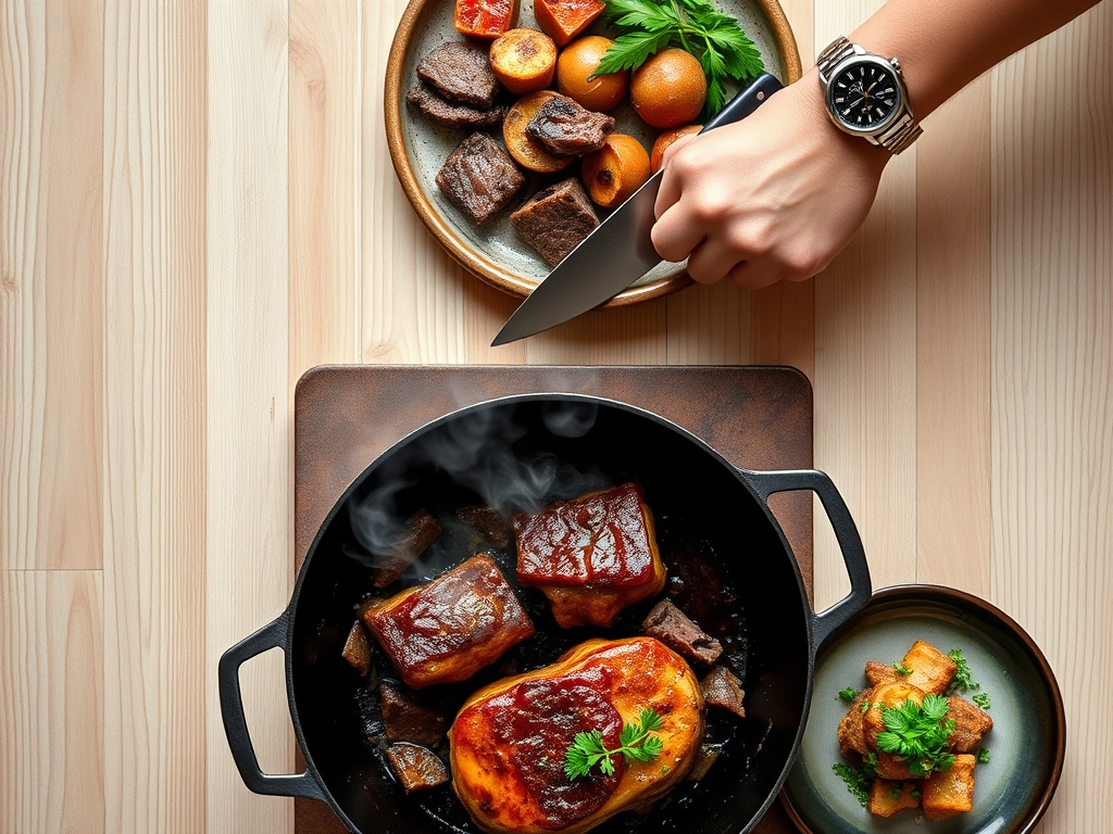 To execute these butter beef recipes with precision, your mise-en-place must be flawless. Start with your protein. Whether you are using a lean tenderloin or a marbled ribeye, the beef must be tempered at room temperature for at least forty-five minutes. Cold meat shocks the pan, dropping the temperature and causing the beef to steam rather than sear. You will need unsalted European-style butter; it has a higher butterfat content and lower water percentage than standard grocery brands, which provides a more viscous mouthfeel.