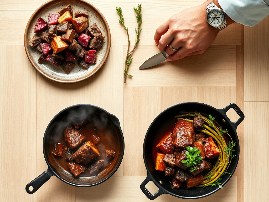 Before we ignite the burner, we must respect the mise-en-place. For the best braised beef recipes, you need cuts with high connective tissue. Look for Chuck Roast, Short Ribs, or Beef Shank. These cuts are riddled with intramuscular fat and silver skin, which will eventually break down into gelatin. You will also need a classic mirepoix: carrots, celery, and onions. Use a digital scale to ensure your ratios are precise; generally, two parts onion to one part each of carrot and celery.